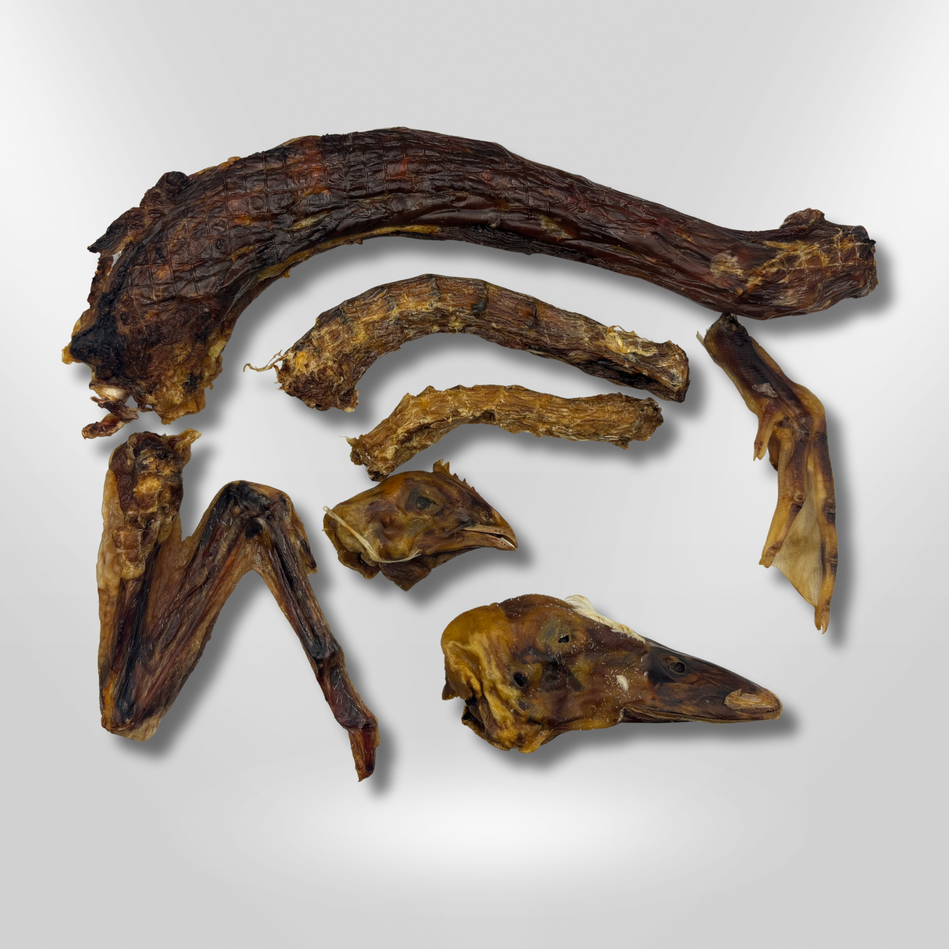 The Wholesale Sampler Pack is the perfect introduction to Tasty Tails’ single-ingredient, nutrient-rich dog chews. Each pack includes 5 pieces each of chicken necks, chicken heads, duck heads, duck feet, duck wings, duck necks, and turkey necks — a variety that lets pups explore new textures and flavors while pet parents discover customer favorites.